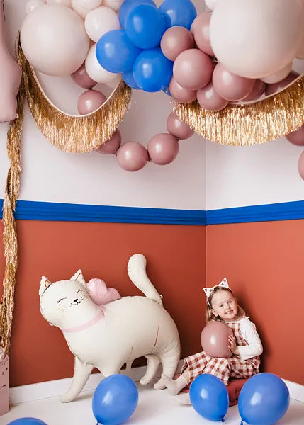 Gör firandet extra charmigt med denna stora och supersöta folieballong formad som en katt! Ballongen föreställer en vit katt med ett rosa rosetthalsband – perfekt för kalas, barnfester eller som en gullig dekoration i rummet. Den kan fyllas med både luft och helium och är enkel att blåsa upp tack vare det medföljande sugröret.