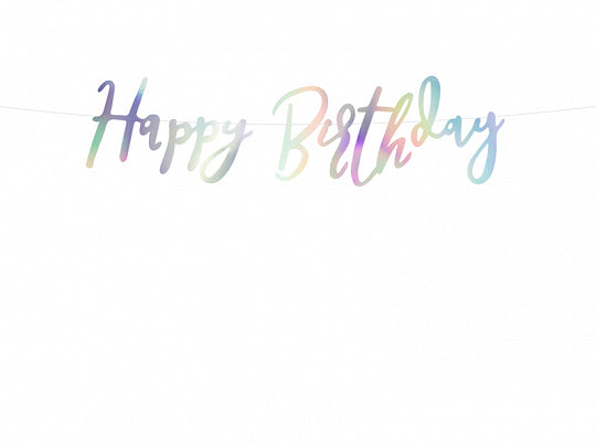 Skimrande Happy Birthday-banderoll – Iridescent (62 cm)