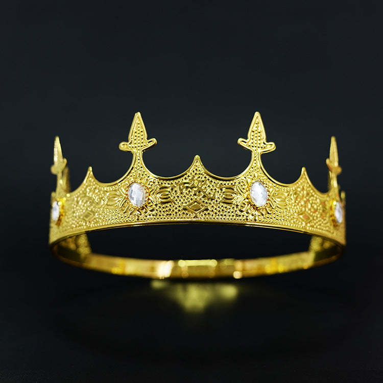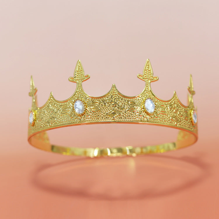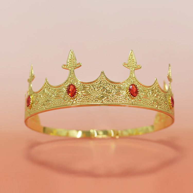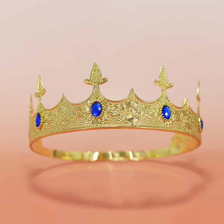 Krona Kung i metall med en pampig och kunglig design. Kronan finns i både glänsande guldmetall och elegant brons, dekorerad med gnistrande kristaller i olika färger. En perfekt accessoar för maskerad, temafest, teater eller när du vill känna dig som en riktig kung för kvällen.
