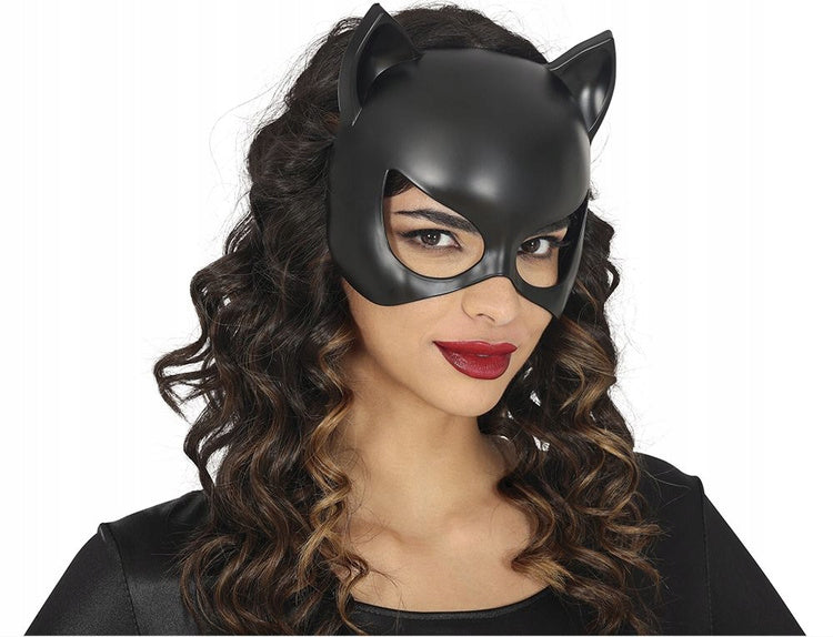Förvandla dig till den ikoniska Catwoman med denna eleganta kattmask! Perfekt för maskerader, Halloween, cosplay eller temafester. Masken sitter bekvämt på ansiktet och ger en mystisk och lekfull look med spetsiga kattöron och detaljerad design.