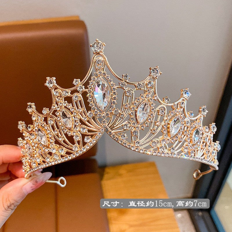 Guldkrona med Kristaller – Elegant krona i guldfärgad metall med gnistrande kristaller. Har en behaglig tyngd som ger känsla av kvalitet och hållbarhet, samtidigt som den är bekväm att bära. Perfekt för bröllop, fest eller andra speciella tillfällen där du vill stråla.