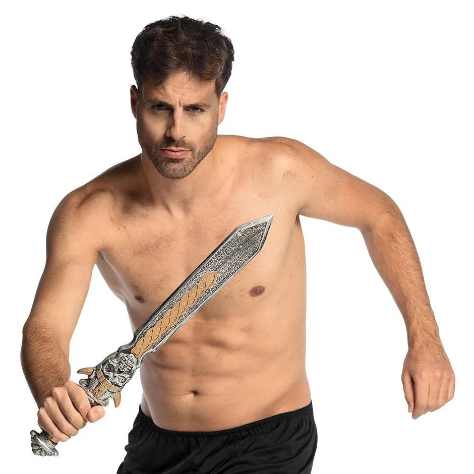 Ett imponerande leksakssvärd på 57 cm med dödskalletema, perfekt för maskerad, temafester eller cosplay. Ger en dramatisk och skrämmande effekt till din krigar- eller piratkostym och blir ett roligt tillbehör för lek och fotografering.