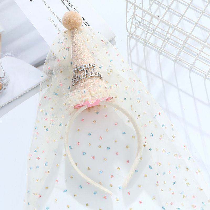 På framsidan sitter en silvrig text med “Happy Birthday” som gör budskapet tydligt och högtidligt. Diademet är dessutom prytt med en matchande slöja som faller mjukt baktill och ger en extra lekfull och festlig touch.