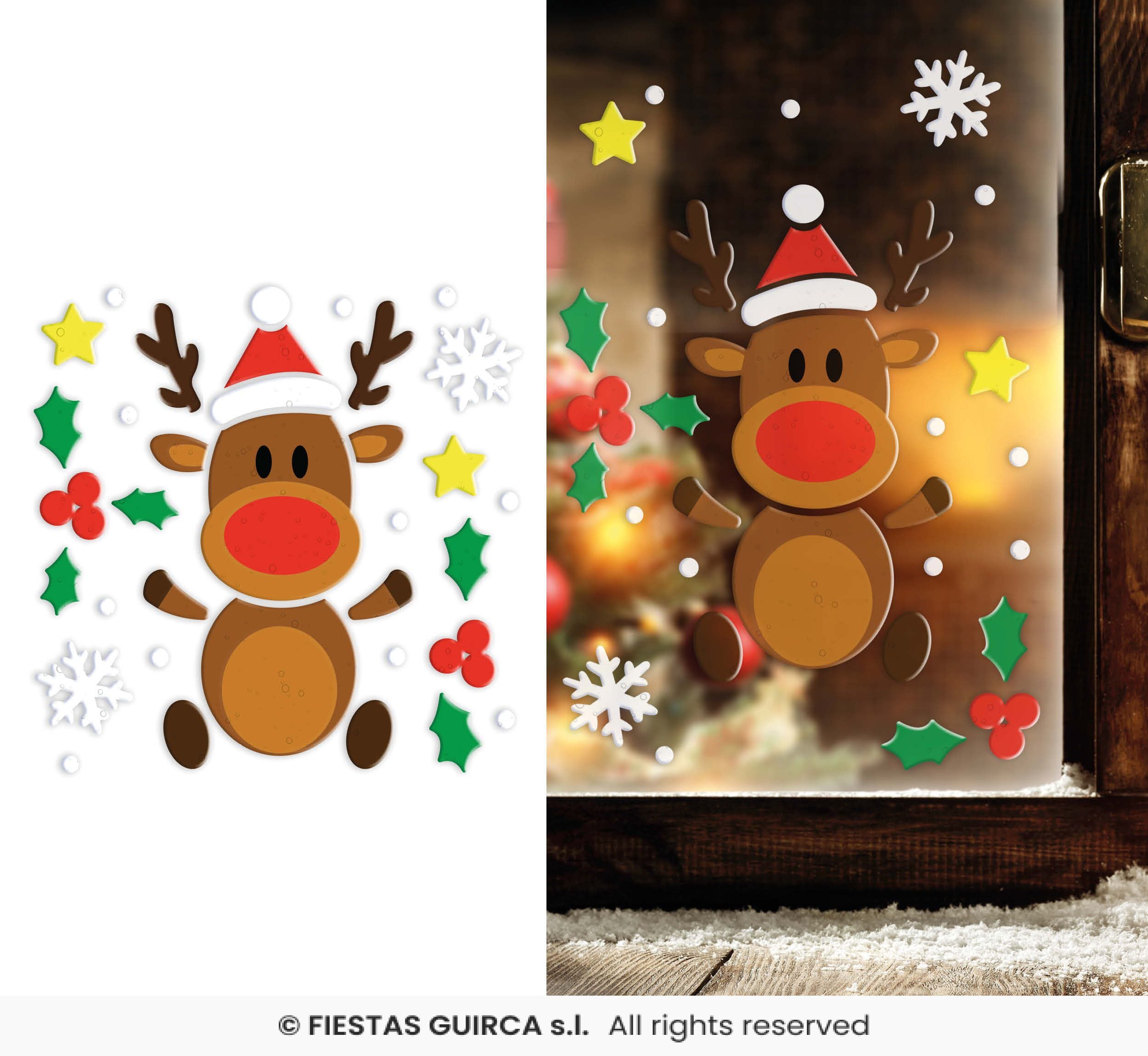 Skapa julstämning med denna charmiga ren-dekoration i gel till fönstret! Med sina 20 × 25 cm blir den ett iögonfallande inslag som sprider vinterglädje och festlig känsla hemma. Enkel att fästa på glasytor och kan återanvändas år efter år.