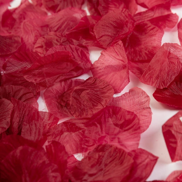 Romantiska och dekorativa vinröda rosenblad i polyester, perfekta för att skapa stämning vid bröllop, Alla hjärtans dag eller festdukningar. Kan strös på bord, i gångar eller användas i dekorationer.