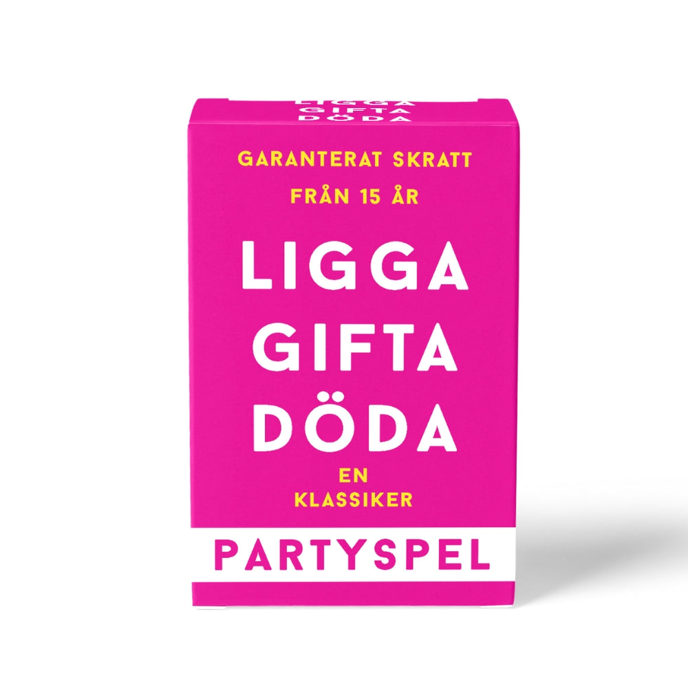 Tre val – inga ursäkter! Ligga, Gifta, Döda Partyspel (Fuck, Marry, Kill) är det ultimata spelet för grupper som älskar skratt, heta diskussioner och oförutsägbara val. Varje kort presenterar tre personer, och du måste snabbt bestämma vem du skulle ligga med, gifta dig med eller… tja, ta bort ur ekvationen. Ett fartfyllt och socialt partyspel som garanterat sätter igång samtalen och bjuder på massor av underhållning. Vågar du anta utmaningen?