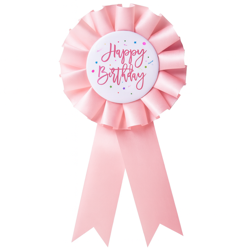 Ge firandet en mjuk och festlig touch! Denna Happy Birthday-pin har ett ljusrosa sidenband som ger ett elegant och lekfullt uttryck. Den vita pinplattan är dekorerad med ljusrosa text i stilfull kursiv design. Perfekt att fästa på paket, presentpåsar eller som en söt födelsedagsdetalj på kläder och accessoarer. En charmig liten dekoration som lyfter känslan på varje födelsedag.