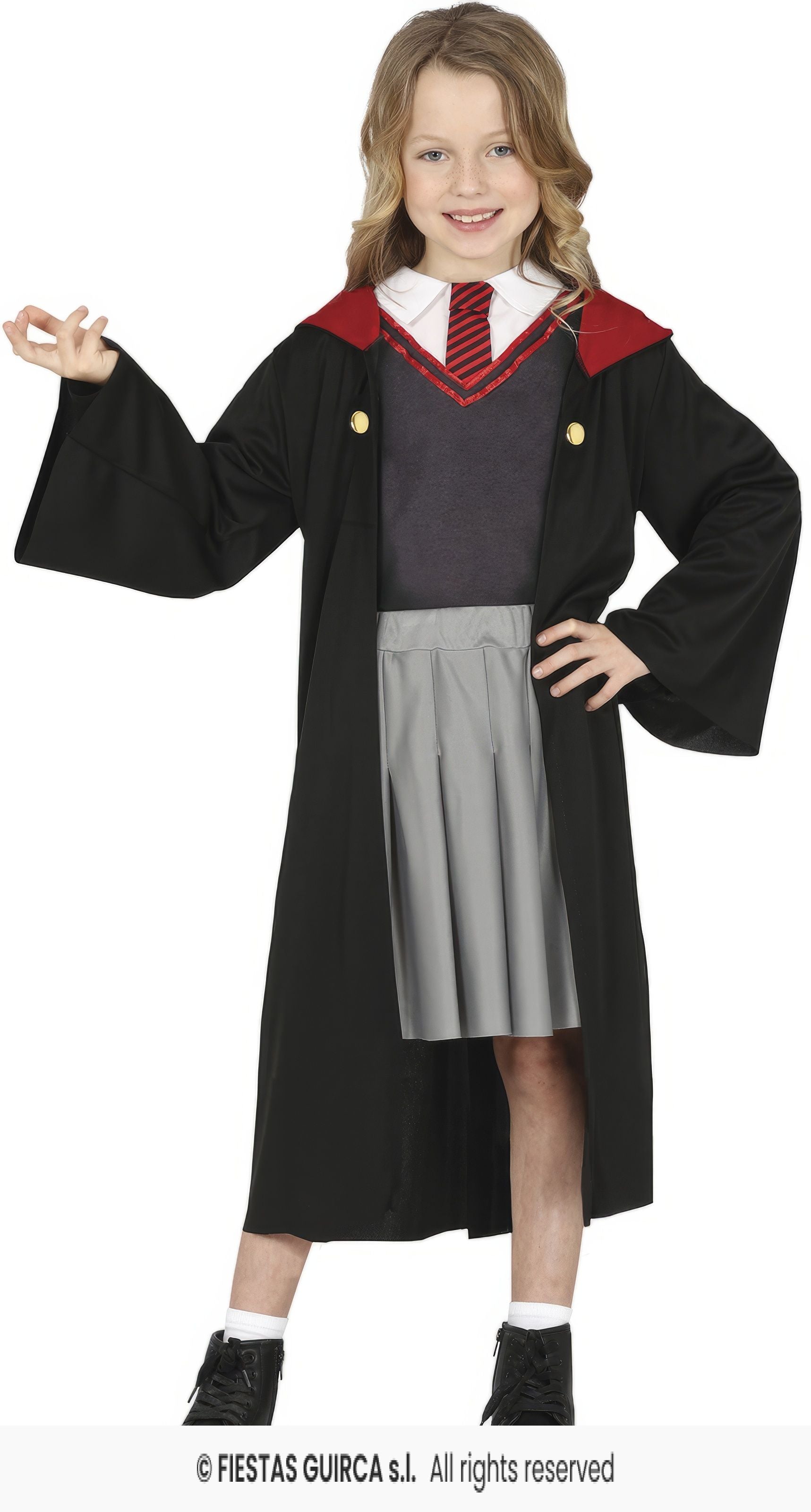 Låt ditt barn känna sig som en riktig liten trollkarl eller häxa med denna magikerdräkt inspirerad av Hermione från Harry Potter! Setet innehåller huva, skjorta, kjol, slips, tunika och väst, alla tillverkade i mjuk och bekväm polyester, vilket ger en autentisk look och behaglig känsla under lek och fest.