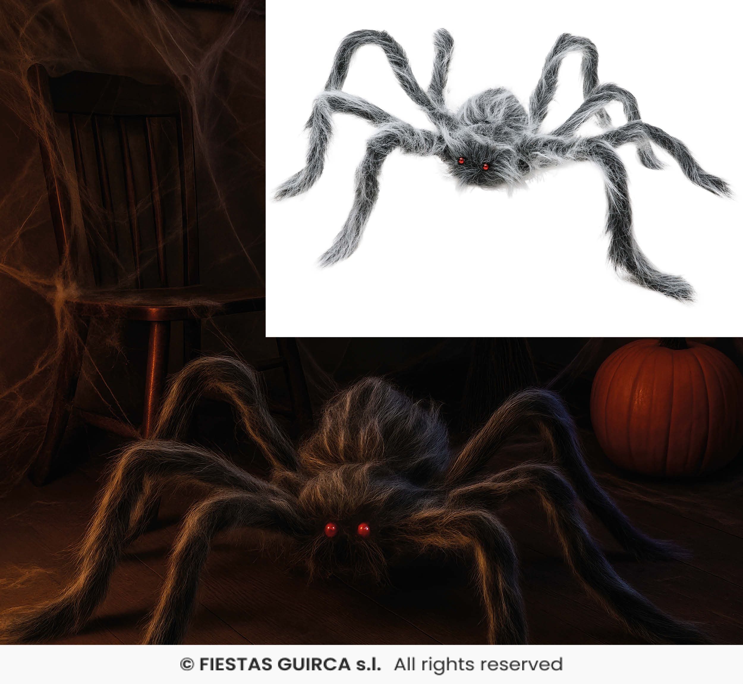 Skapa en riktigt kuslig stämning med denna stora grå spindel på 70 cm. Perfekt som Halloween-dekoration, rekvisita till temafester eller skräckmaskerader. Spindeln är tillverkad i en kombination av metall, polyester och PVC för både hållbarhet och realistisk känsla.