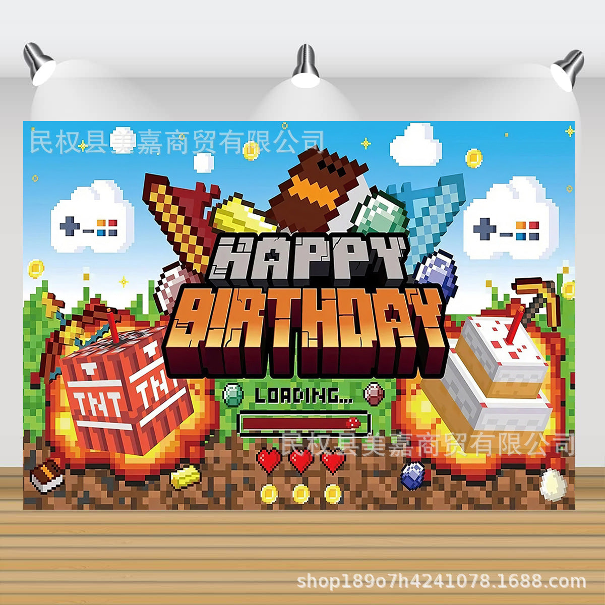 Motiv: Minecraft-tema med "Happy Birthday"-text